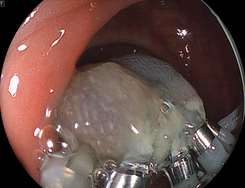 切除後の潰瘍底に後出血予防のクリップを追加しました。